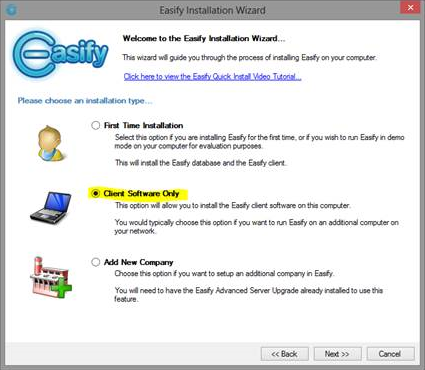 Then you need to run the Full Installer on each new Easify client computer, selecting the Client Software Only option: