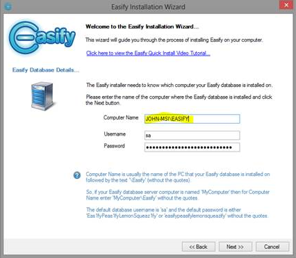 First we need to know the name of your Easify database computer, found in the bottom left of the main Easify window (the first computer you installed Easify onto):
