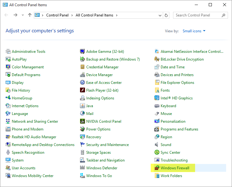• Step 1. Open the Windows Control Panel and open the Windows Firewall options