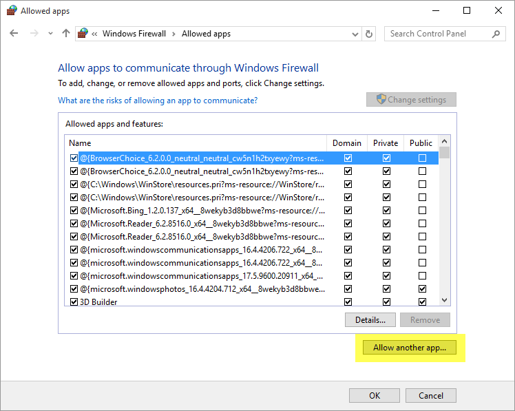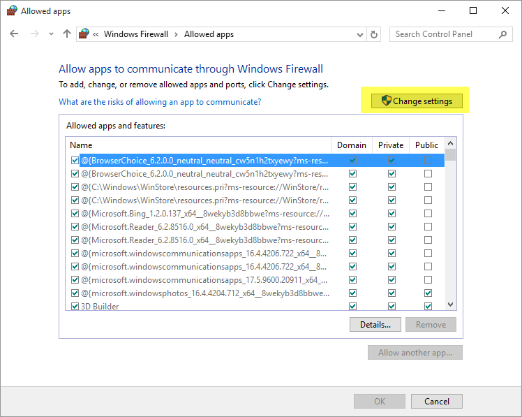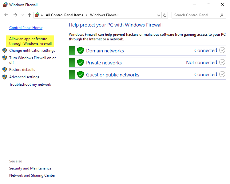 • Step2. Click on Allow an app or feature through Windows Firewall