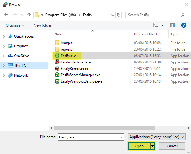 • Step 5. Browse to C:\Program Files (x86)\Easify\Easify.exe and select Open