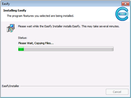 Easify installer hangs at 'Please Wait, Copying Files...'