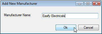Enter the manufacturers name then click OK to add the manufacturer to Easify.
