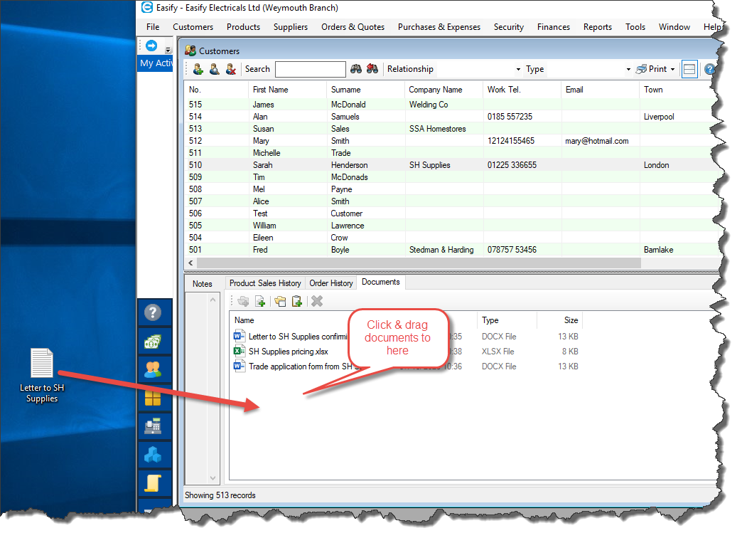 Easify includes a Document Management System (DMS) where you can store any relevant paperwork relating to your Customers, Orders, Purchases or Suppliers.