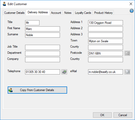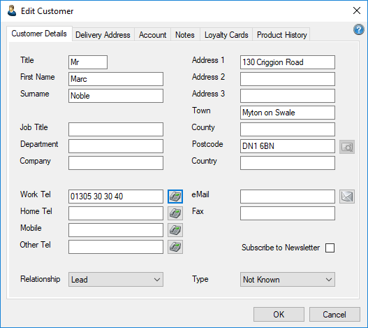 Enter the details you would like to keep on record for the customer and click OK to accept and confirm the changes.
