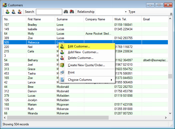 2: Double-click on a Customer. Alternatively, right-click on a Customer and select Edit Customer…