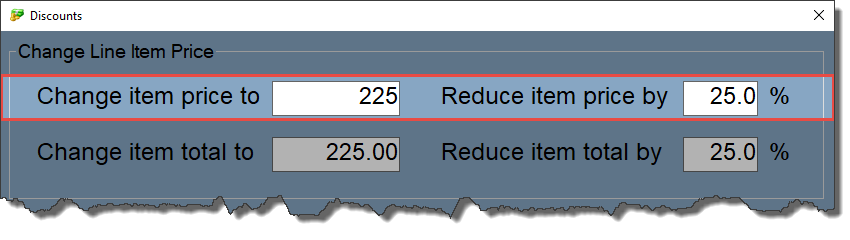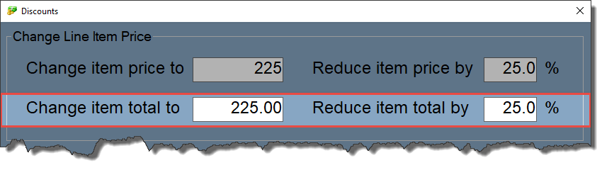 The second row effects the Line Item total rather than the item price and you have the same choice of entering a set value or a percentage.