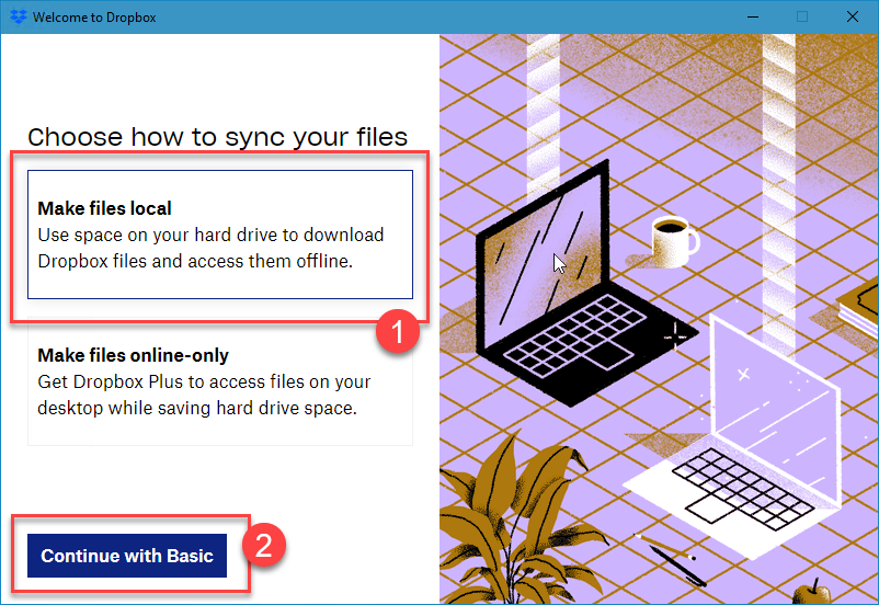 On the next page select the top option (Make files local). This allows you to use Dropbox Basic.