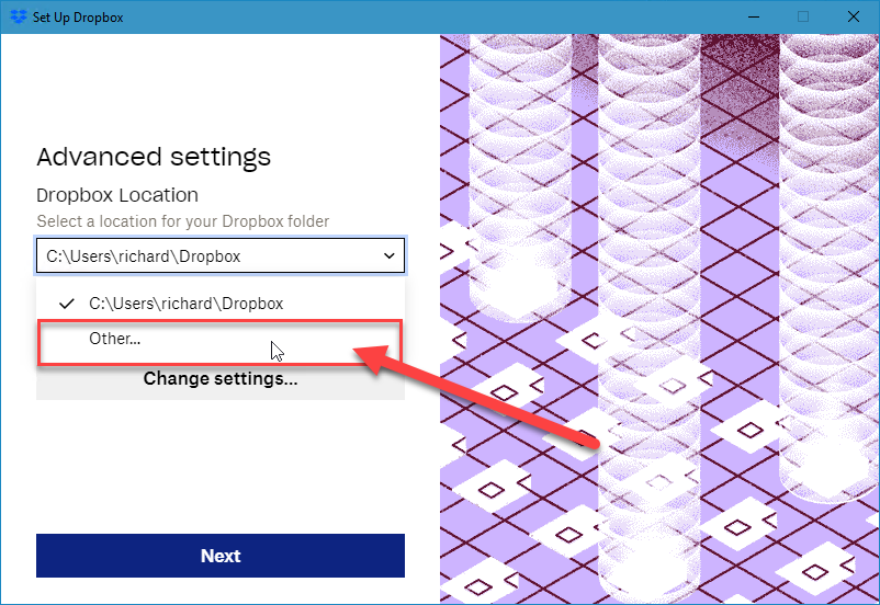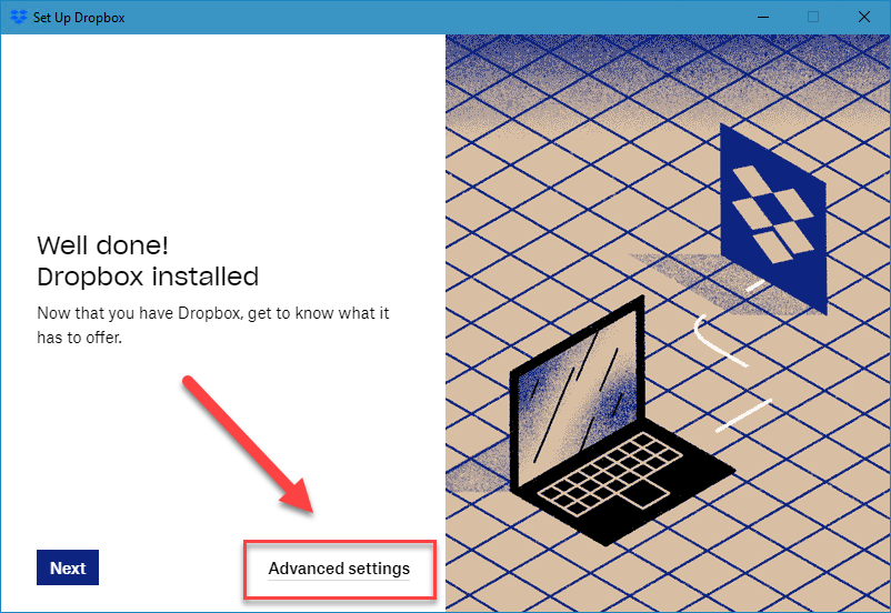 On the next page click Advanced Settings - this is where we tell Dropbox where to find our DMS files..