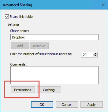 Click OK when done and you will return to the Advanced Sharing dialogue.
