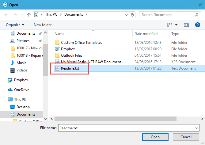 Click the Open button when done.