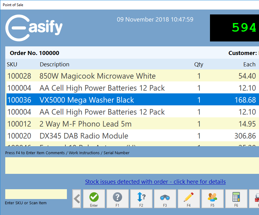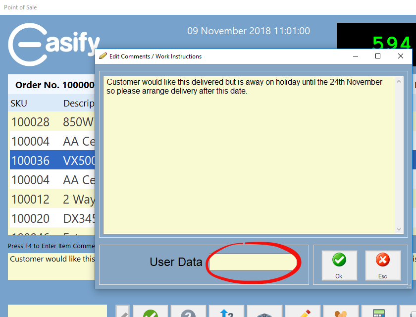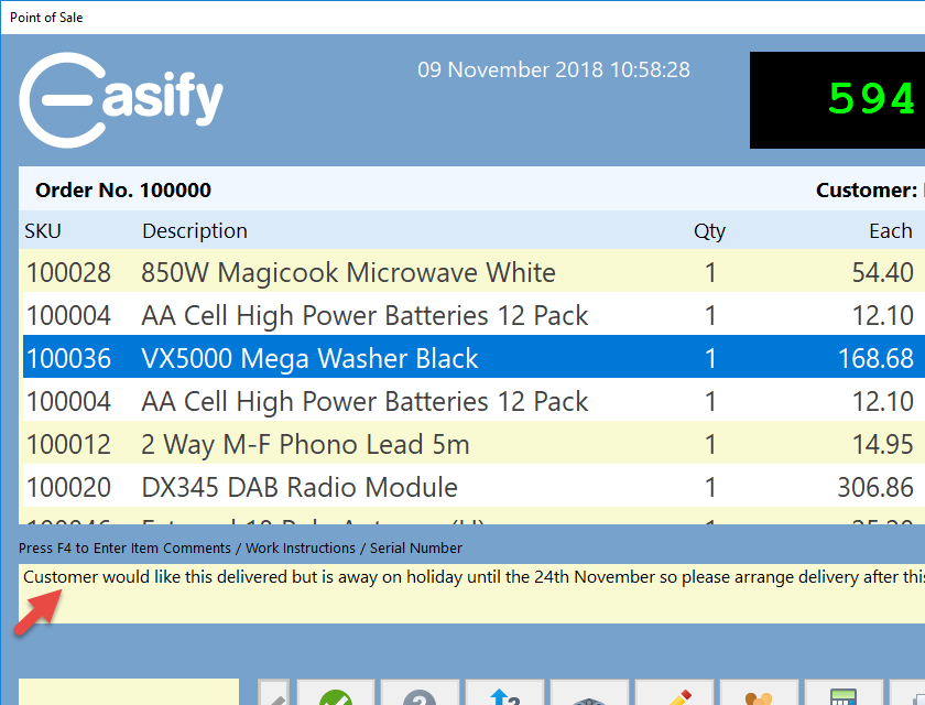 Or if you sell products with services such as delivery or installation you can add comments to record any arrangements that have been made at the point of sale.