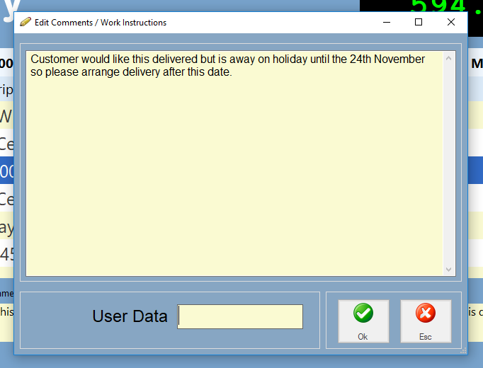 In the Edit Comments / Work Instructions window enter your desired comments and click the Ok button when done.