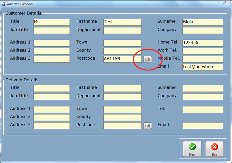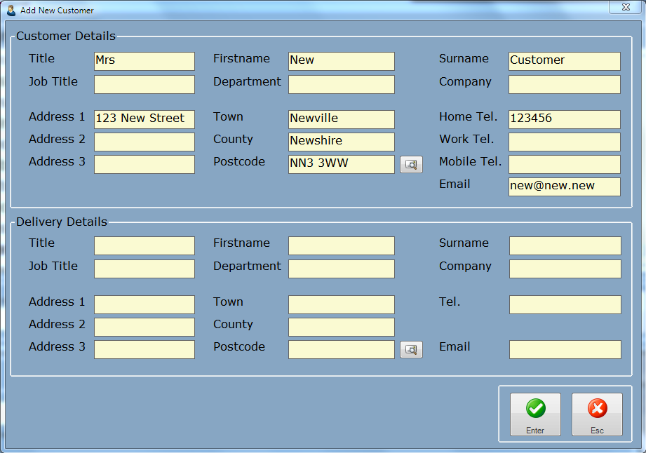 Proceed to enter the customers details into this window, and click the Enter button when done.