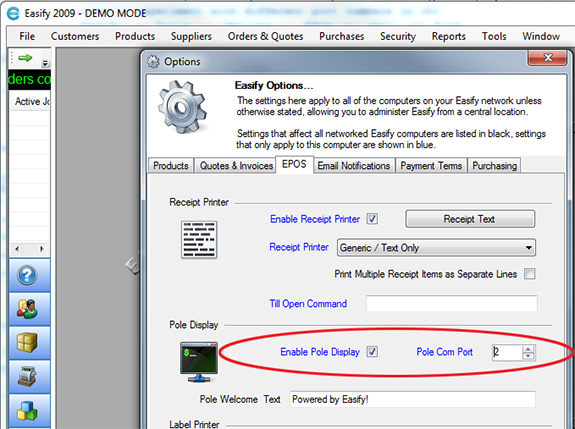 NOTE: After you have changed the Pole Com Port setting you will need to close and re-open Easify in order for the changes to take effect. You will know when the pole display is working as it will display the Pole Welcome Text when you launch Easify.
