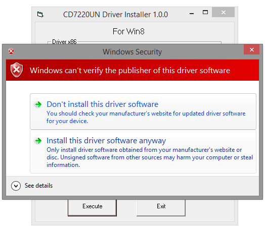 Save the driver to your desktop and extract the CD7220_WIN8_Install_130729.exe file to your desktop.