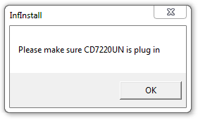 When you plug in the CD-7220, Windows will attempt to install a driver for the device, but since we haven't installed the drivers yet this will fail. If you get a warning that the CD-7220 device driver software was not successfully installed, this is perfectly normal and the error can be ignored.