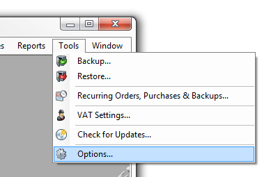 The printer has now been setup for use with Easify, so in Easify go to Tools > Options.