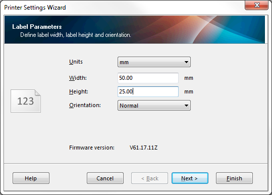 On this screen set Width to 50 and Height to 25, then click Finish.