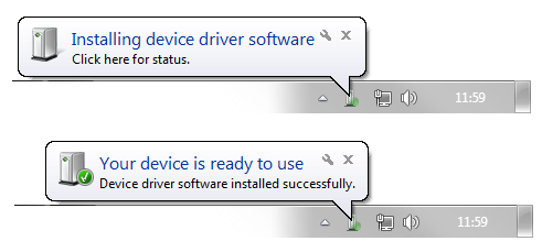 Plug the printer into your computer and wait for Windows to say it has installed the hardware: