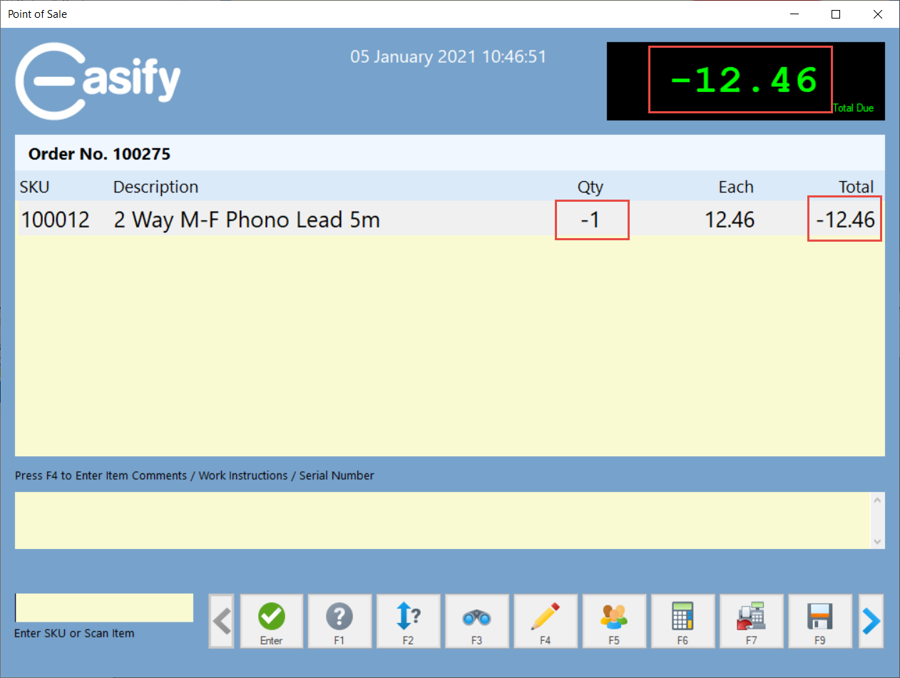 Once you are ready, you can press F12 to take payment or issue a refund as required.