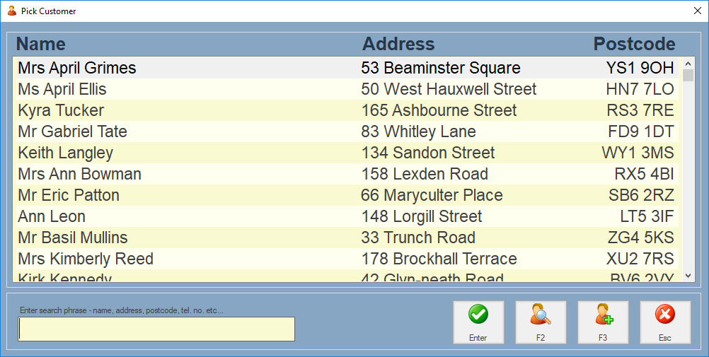 When you have found your customer, make sure they are selected (highlighted) and click the Enter button.