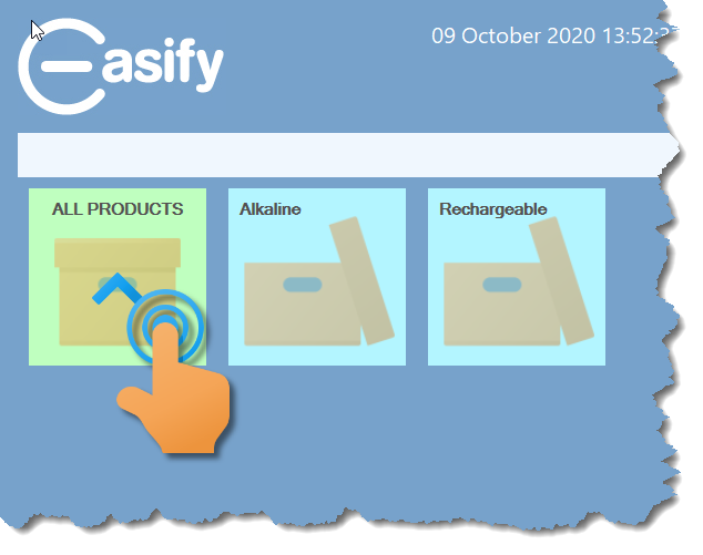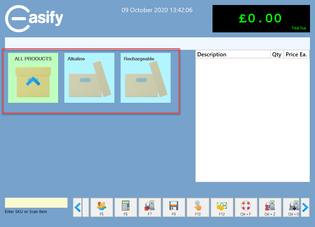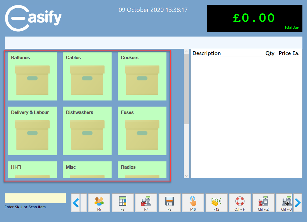When you first go to the touch buttons view, you will see an array of buttons, each one representing a product category in Easify.