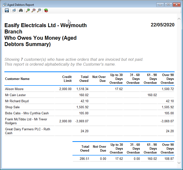 You also don't need to change any configuration settings for Easify to handle customer payment terms, reports such as "Who owes you money" will function without any configuration other than setting a customers payment terms.