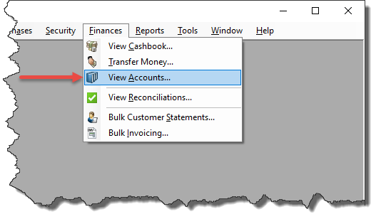 In Easify, click on Finances -> View Accounts and double click to select the account that you’re going to be reconciling
