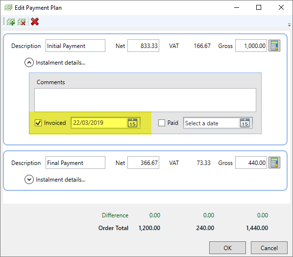 If this is the final instalment, the order will also be set as ‘All invoiced’ and the order 'Date Invoiced' will be set to today.