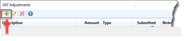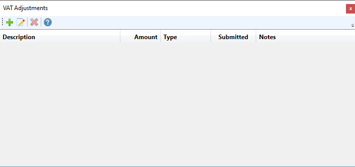 This will bring up the VAT Adjustments window. If this is the first time you have used this feature it will show blank, however as you start and record your adjustments they will show in here.