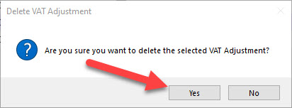 Press Yes to Delete the VAT adjustment (or click No to cancel out the deletion and keep the adjustment).