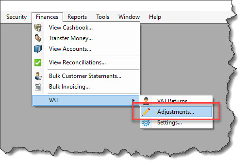 NOTE: The ability to file VAT adjustments was introduced in V4.80 so if you are using a previous version you will need to upgrade.