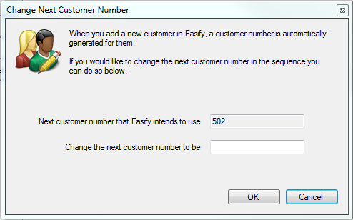 To change this number simply enter your preferred next customer number in the box below and click OK.