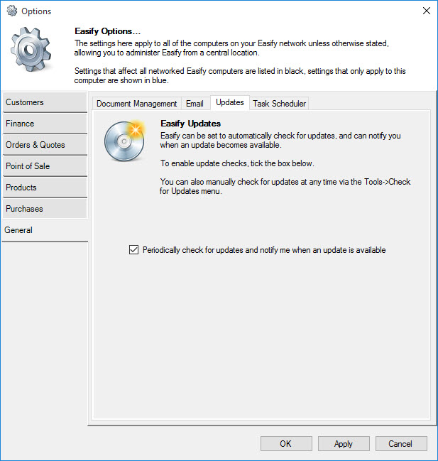 You can have Easify automatically notify you when a new update is available by ticking the check box on this screen.