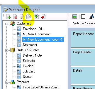 NOTE: Before you edit an existing document, we recommend that you either create a copy of it in the Paperwork Designer before you start, or use the Paperwork Designer to export it to a file so that you can restore it from disk if you need to revert back to the original. If you should end up irretrievably corrupting a document by mistake, all of the documents that were originally installed with Easify can be found in the Easify Installation folder in the \Reports\Originals folder (typically C:\Program Files\Easify\Client\Paperwork Designer\Originals). You can import these via the Paperwork Designer should you ever need to.