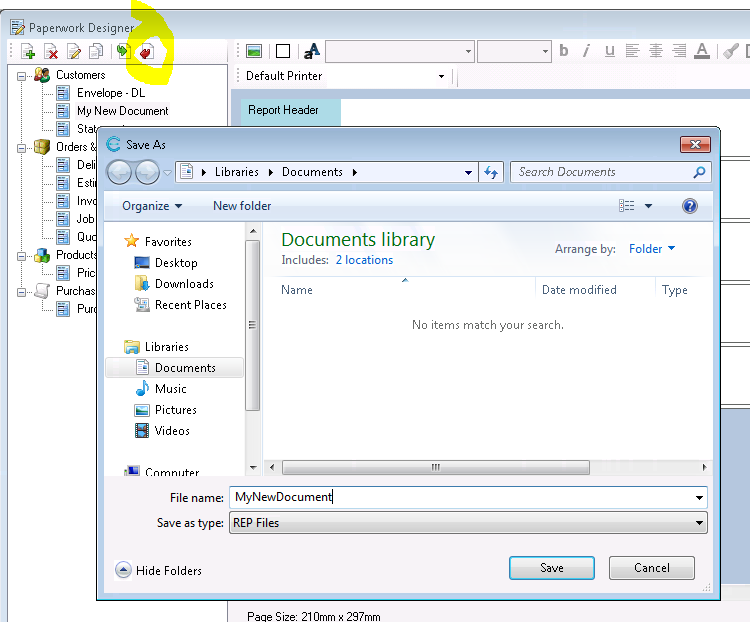NOTE: All of the documents that you create in Easify are stored in the Easify database. The advantage of this is that when you backup your Easify database, you automatically backup all of the documents that you have designed. Also the documents that you create will be immediately available to all networked Easify users without having to copy any files to individual computers.