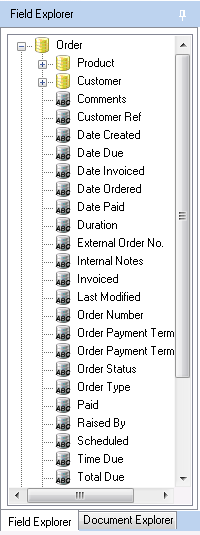 When you select an item in the Document Explorer by clicking it, the corresponding picture or text field will be outlined in red in the Document Designer. This is a handy way of identifying which field is which.