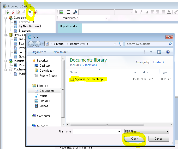You can load any of your existing documents into the Document Designer by simply clicking the desired document in the Document Browser. The selected document will be loaded into the Document Designer where it can be edited.