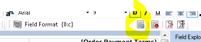 The Pick Field Format button allows you to choose a format string from a pre-defined list for the selected mergefield in the Document Designer so that it will be formatted in a manner of your choosing. This is useful to control how dates and prices are displayed on your paperwork.