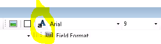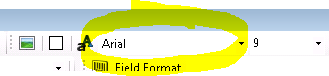 The Font Name drop down list displays the Font Name of the currently selected text box or mergefield.