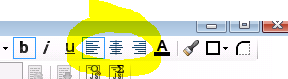 The Font Justification buttons allow you to change the text alignment (Left, Centre or Right) of the currently selected text box or mergefield.