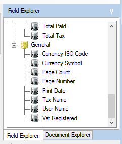 The Field Explorer also contains a number of general fields that do not vary depending on document type and are always the same.