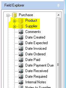 The Supplier Mergefields within the Field Explorer for Purchases documents are intended for advanced documents where you want to print a document based on a specific purchase, but also include data related to the Supplier that is associated with it. An example of this type of document would be a Purchase Order where you want the document to print for a specific order, and also include supplier information on it.