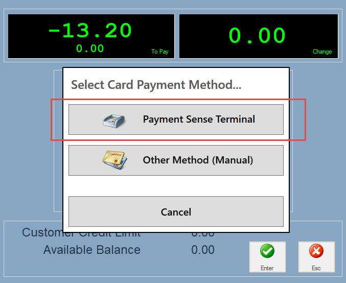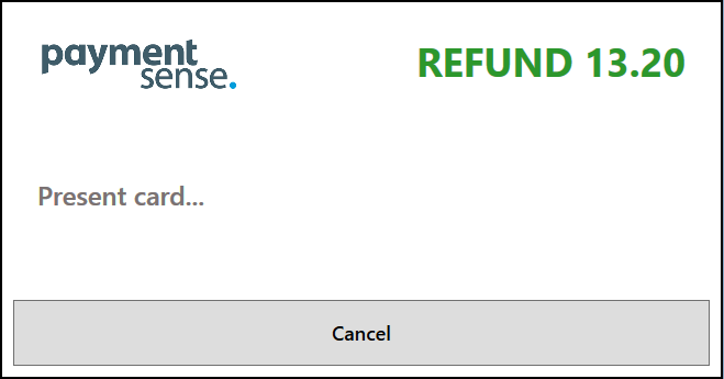 To make the refund using the Payment Sense card terminal click the Payment Sense Terminal button.