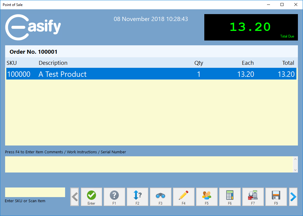 When you click the Payment Sense Terminal button the card transaction will be sent to the card terminal. While the transaction is in progress, the current state of the transaction will be displayed on the Easify POS Window so that you can guide the user through the transaction without needing to look at the card terminal screen.