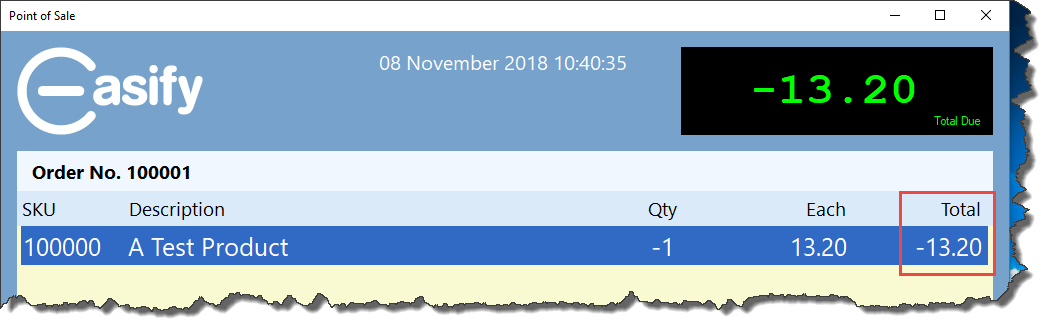 Then make sure the product to be refunded for is selected and press the Returns button or press F7.