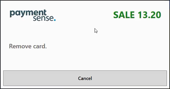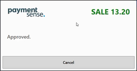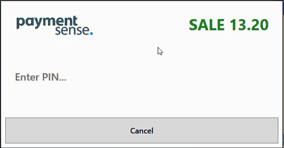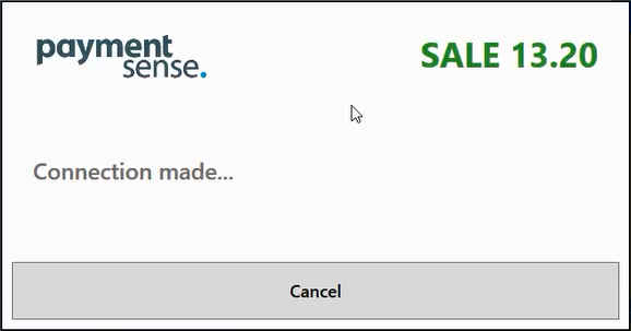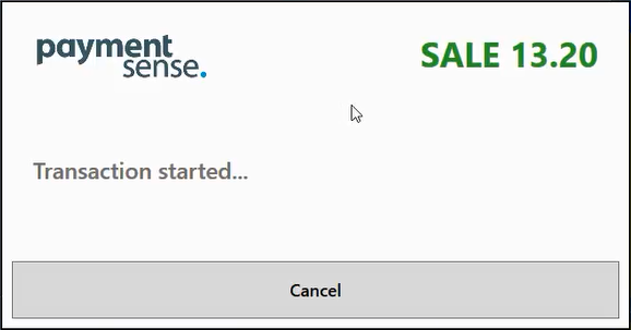 When you click the Payment Sense Terminal button the card transaction will be sent to the card terminal. While the transaction is in progress, the current state of the transaction will be displayed on the Easify POS Window so that you can guide the user through the transaction without needing to look at the card terminal screen.