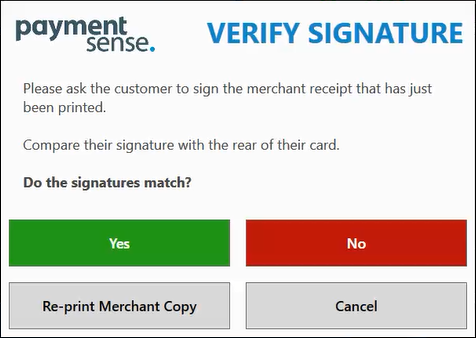 If the signatures do not match, click the No button and the transaction will be cancelled and you will be taken back to the Easify POS Payment screen to choose an alternate payment method.