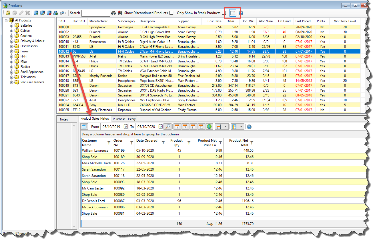 The Product Sales History allows you to see how your products have sold over any given period, and with Live Reporting you can and sort and filter the results in a variety of different ways.